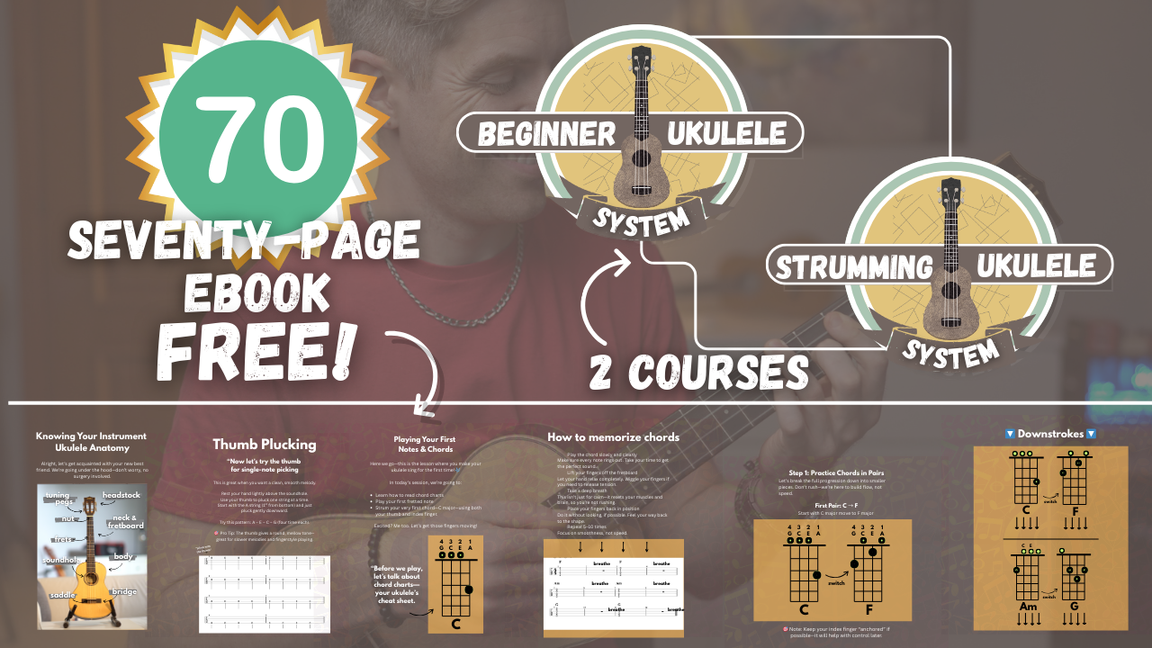 Beginner Ukulele System â Perfect if youâre brand new or want a refresher. Learn ukulele anatomy, tuning, your first five chords, and even play your very first song.