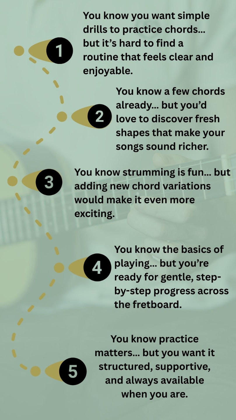 We built this system for guitar players who want to improve their chords and enjoy a practical routine that’s progressive, simple, and fun to practice.