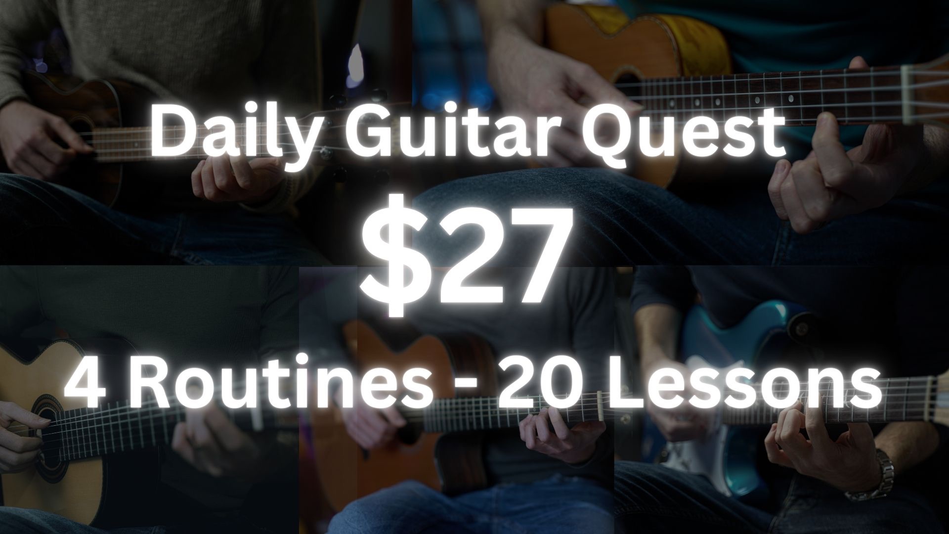 Are you ready to transform your guitar playing in just 4 weeks? With the Daily Guitar Quest, you'll gain access to 4 exclusive routines, packed with expert guidance, step-by-step lessons, and beautiful music that will elevate your skills to new heights!